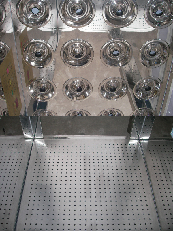 對比優勢:市場上現有的風淋設備——結構簡單、左右兩側出風吹淋、易引起亂流和渦流、除塵效果欠佳。