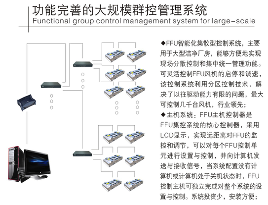 當前生產企業使用FFU不是一臺兩臺的使用,而是成百上千的一起使用,因此為了管理方便,往往對FFU采取網絡群控的方式,而廣州梓凈今天分享的就是FFU群控網絡安裝方案。